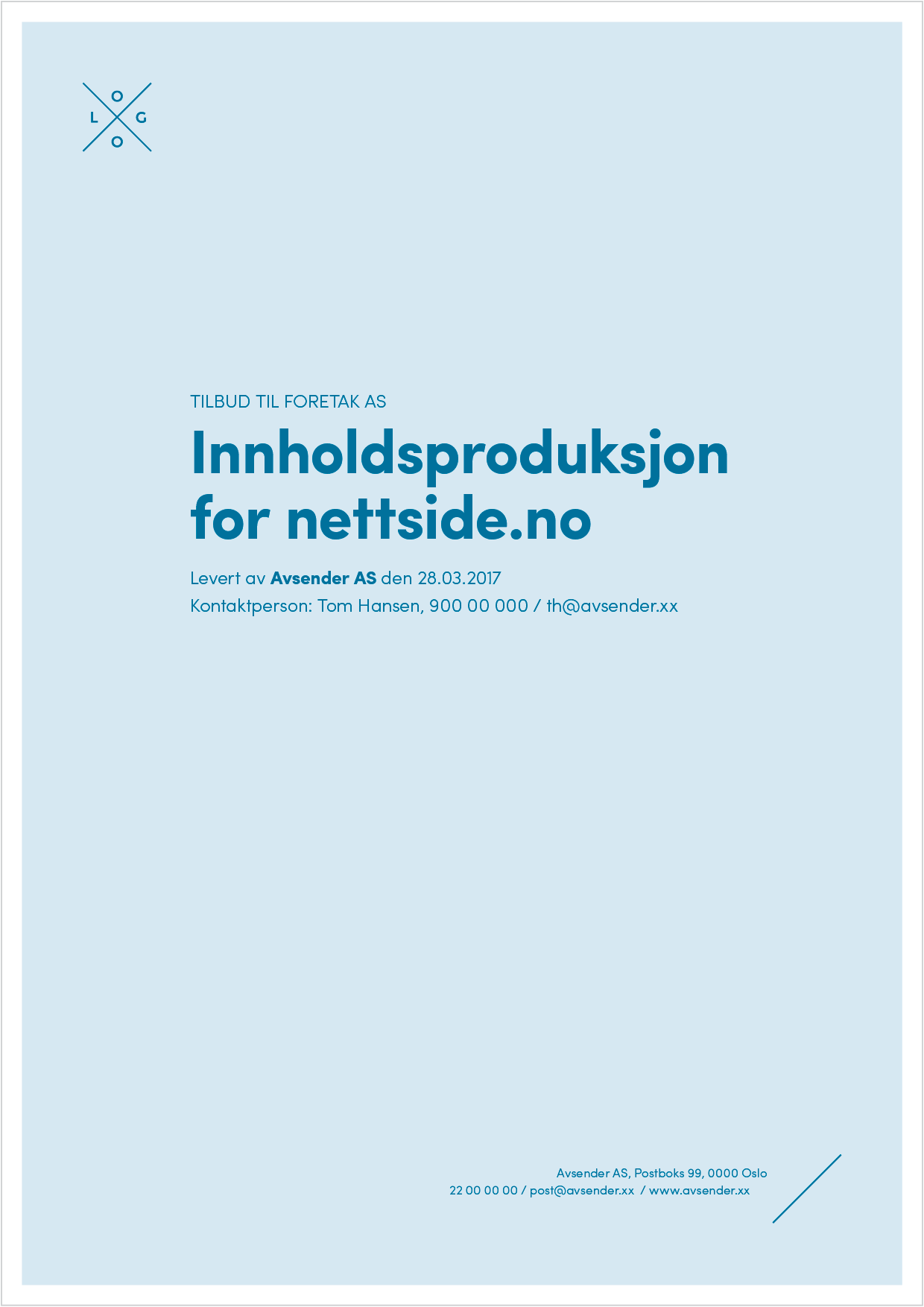 Allerede før hun leser tilbudet ditt danner mottakeren seg et inntrykk. Hun ser den første siden i det hun legger det i bunken, eller åpner det kjapt når hun får det som vedlegg til en epost.